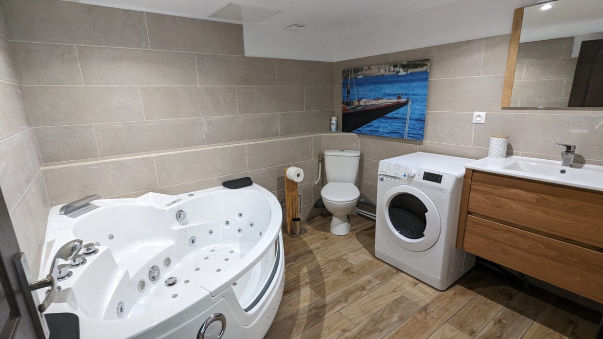 Equipements intérieurs - Télévision 4K 50" - Frigo - Congélateur - Micro-onde - Batterie de cuisine - Petit électroménager - Lave vaisselle - Lave linge - Sèche linge - Balnéothérapie